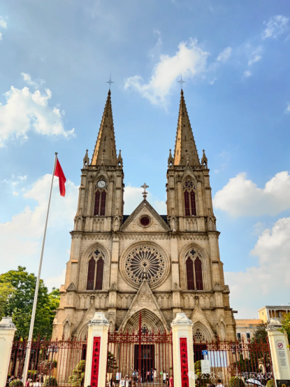 广州石室圣心大教堂是全球四座全石结构哥特式教堂建筑之一(另外三座是巴黎圣母院、威斯敏斯特教堂、科隆大教堂),是重要的城市地标,融合了历史沧桑、中西建筑和宗教神圣于一身的伟大建筑。