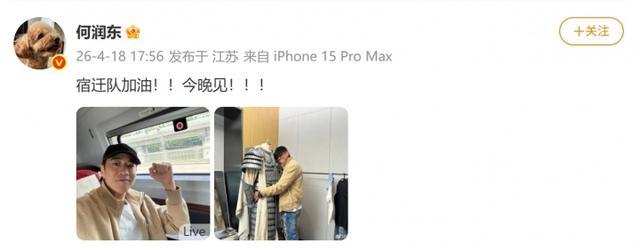 何润东也于今日下午抵达宿迁奥体中心,并在刚刚发布社媒,并写到:宿迁队加油!!今晚见!!!