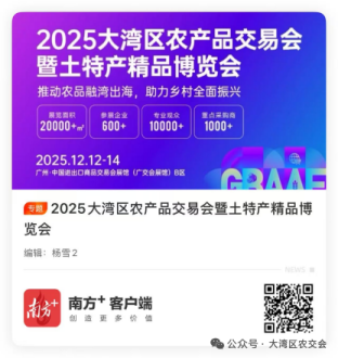 2025大湾区农产品交易会暨土特产精品博览会(简称“大湾区农交会”)将于12月12日-14日在广东·广州广交会展馆B区盛大启幕!